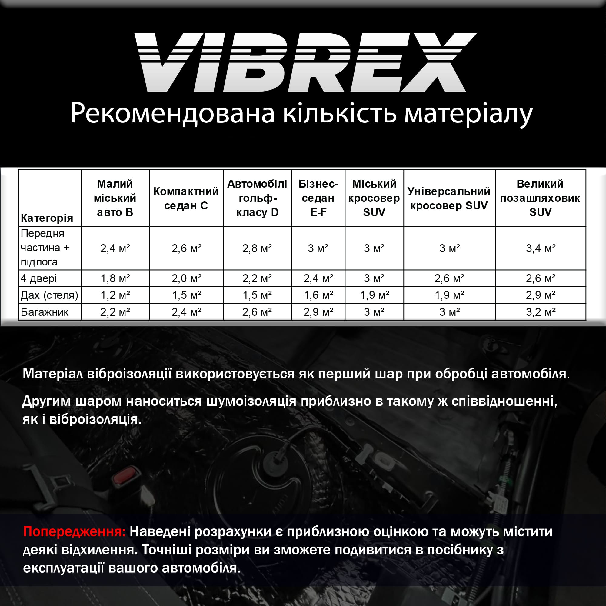 Vibrex Optimal 2 мм – идеальное решение для базовой обработки наиболее уязвимых зон: крыши, дверей, капота и крышки багажника.